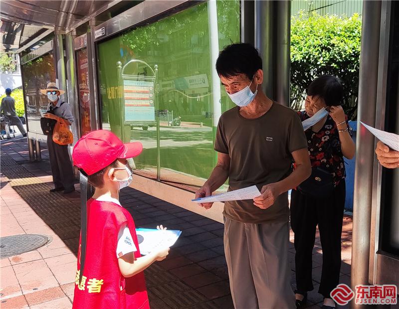 志愿者正向路人分發宣傳折頁(寧寶社區新時代文明實踐站供圖)