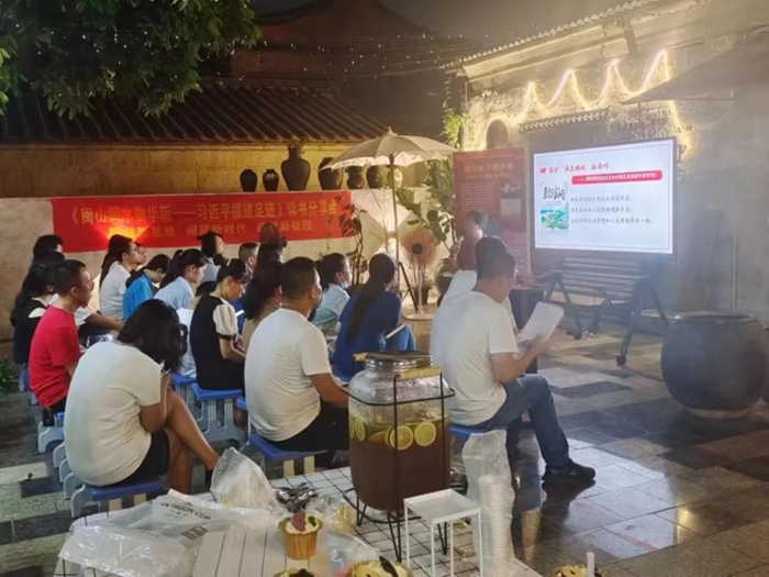文明風(fēng)8月11日訊 夜幕降臨,涼風(fēng)習(xí)習(xí)。在晉江市東石鎮(zhèn)湖頭村的檗湖小院里,30多名黨員、職工、村民代表等圍坐在一起,共同分享《閩山閩水物華新——習(xí)近平福建足跡》讀后感。這是近日,該鎮(zhèn)圍繞該書籍的學(xué)習(xí)組織開展的主題活動之一。