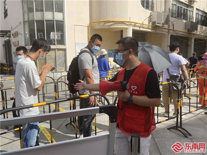 鳳林美社區志愿者在維持采樣點秩序(僑英街道新時代文明實踐所供圖)