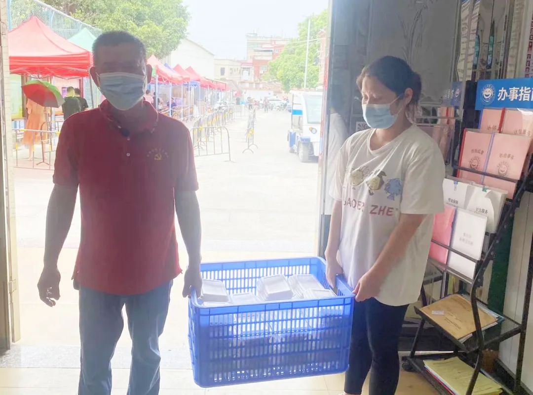 陳衛央和女兒陳心怡搬運工作餐。(西柯街道供圖)