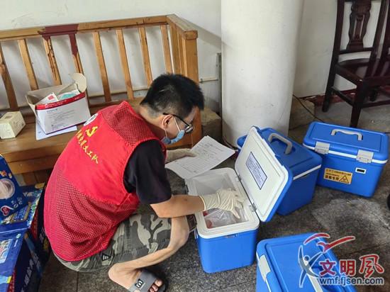 蔡欣磊在仔細(xì)核對(duì)核酸樣本(翔安區(qū)委文明辦供圖)
