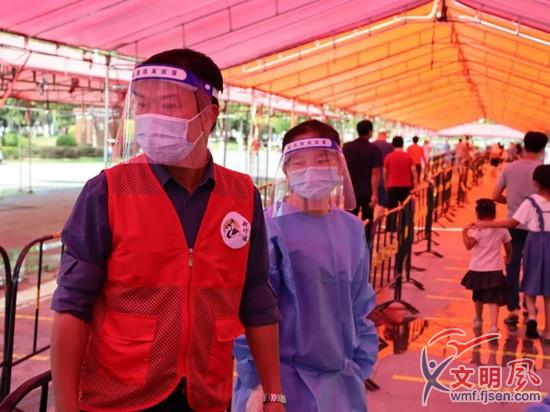 “我們?nèi)叶荚跒榭挂吲χ娴奶貏e有意義!”新圩社區(qū)微型消防站站長沈金鉆是一名黨員,他配合社區(qū)核酸檢測工作,主動(dòng)為防疫工作出力。“疫情三年,每次防疫志愿活動(dòng)我一次不落,我有經(jīng)驗(yàn),上手比較快。”看著丈夫加入志愿者隊(duì)伍,妻子洪麗勤也不甘落后,積極投身志愿服務(wù)中。