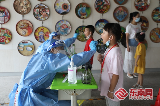 泉州市通政中心小學一年級新生有序排隊進行核酸采樣。學校 供圖