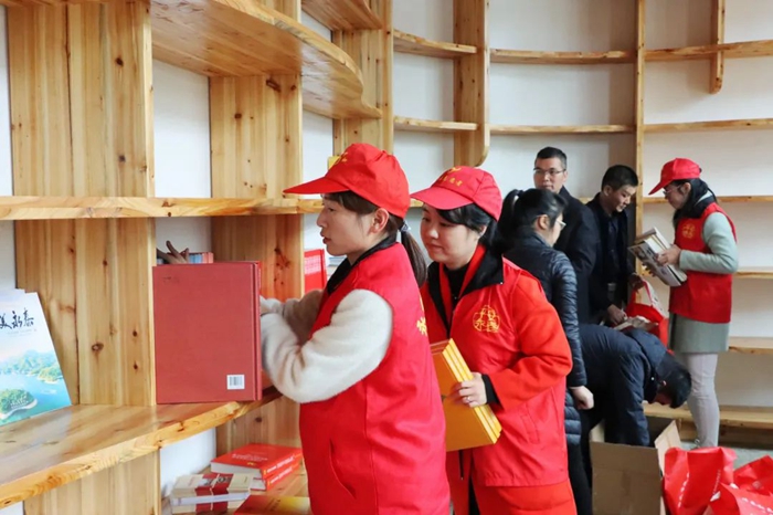 志愿者將書籍上架(永泰縣文明辦供圖)