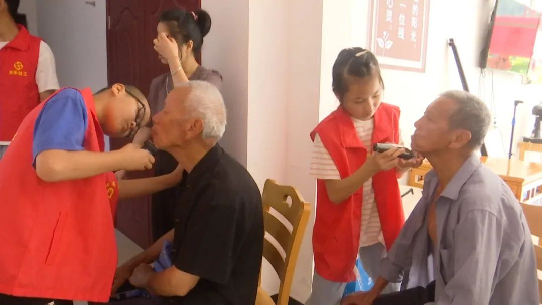 志愿者們聽說村里的理發師中風后不能再為村民理發這一情況后,特意安排了理發師到村里開展義剪,許多將近一個月未理發的老人開心地趕來理發。記者在現場看到了兩個可愛的小身影,他們是一對姐弟,在暑假期間跟隨理發師媽媽當起了社工,為需要理發的爺爺們刮起了胡子,動作嫻熟。“幫助老人是一種很快樂的活動,老人們覺得自己很孤單,是需要兒女經常回來陪伴的。”小學生陳軍宏說道。