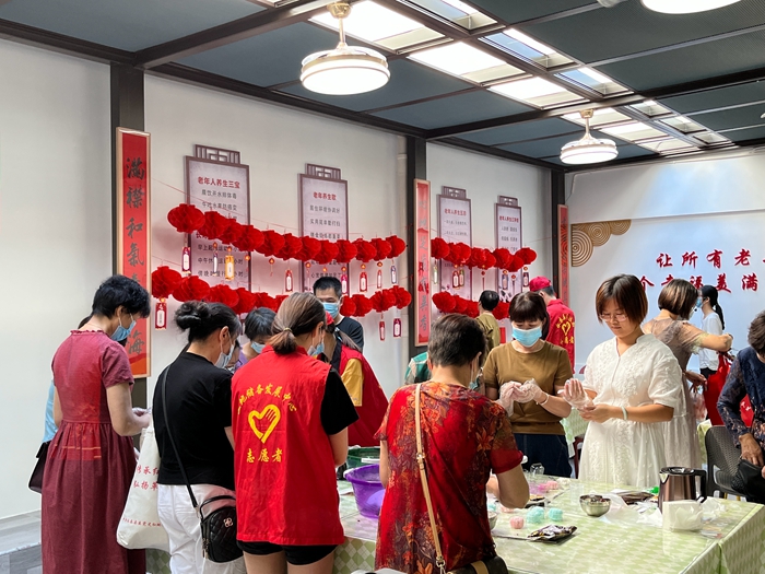 志愿者與群眾一起制作月餅(永泰縣文明辦供圖)