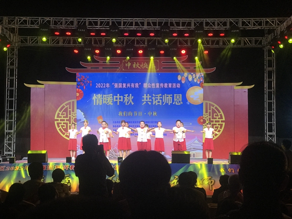 本次文藝演出分為朝朝沐師恩、童心表真情、巧手做花燈、禮贊中秋節等四個環節,演出正式開始,西埔小學學生帶來的舞蹈《雪龍吟》引起臺下觀眾陣陣掌聲,道德模范吳曉東進基層宣講《曾老的高度》,古箏《豐收鑼鼓》,詩歌朗誦《少年說》等14個精彩節目輪番上演。現場還為“優秀教師”“文明戶”“移風易俗示范戶”等頒獎。最后,晚會在歌曲《我和我的祖國》中落下帷幕。