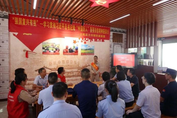 文明風9月16日訊 近日,由國網上杭縣供電公司主辦,古田鎮黨建聯盟各單位協辦的“強國復興有我”——“中國好人”故事分享座談會在古田鎮五龍村龍巖新時代文明實踐示范點為民服務站舉行,古田鎮黨委及區域內公安、消防、稅務、市場監管、銀行系統、基層社區等單位黨組織負責人或代表及當地群眾代表參加活動。