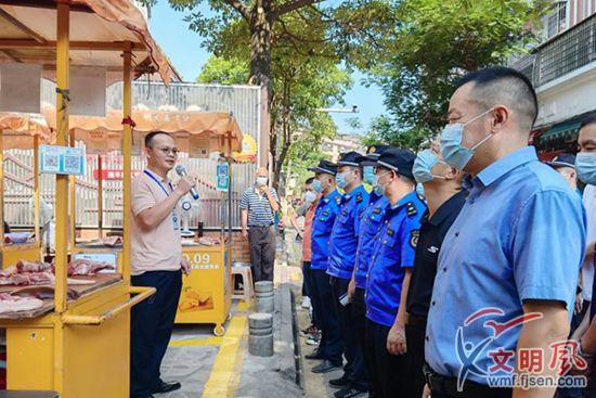 同安區城管辦工作人員介紹“攤規點”相關情況。蔡建明攝