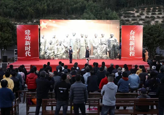 新編排的閩劇表演《歡慶黨的二十大,團結(jié)奮進新征程》與快板表演《唱響黨的二十大精神》節(jié)目,將黨的二十大精神融入到傳統(tǒng)的表演形式中去,讓觀眾在愉快輕松的氛圍中感悟黨的二十大精神。