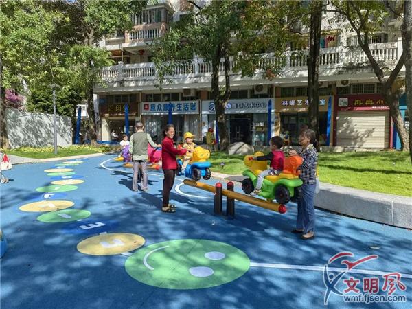 附近居民帶孩子在口袋公園里游玩。(海滄區委文明辦供圖)