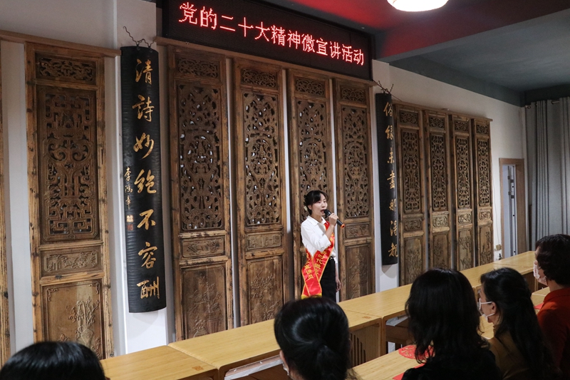 宣講員言語從容舒緩,將黨的二十大精神與振奮人心的發展故事娓娓道來;“剪花嫂”們配樂表演“藝心永向黨”,紅紙絮碎姍姍而下,充分展示了浦城剪紙的獨特魅力;國家非遺項目浦城剪紙省級非遺傳承人周冬梅講述了《喜慶二十大》剪紙作品創作初衷,現場觀眾在欣賞作品之余,也紛紛拿起紅紙與剪刀,體驗非遺文化的魅力。