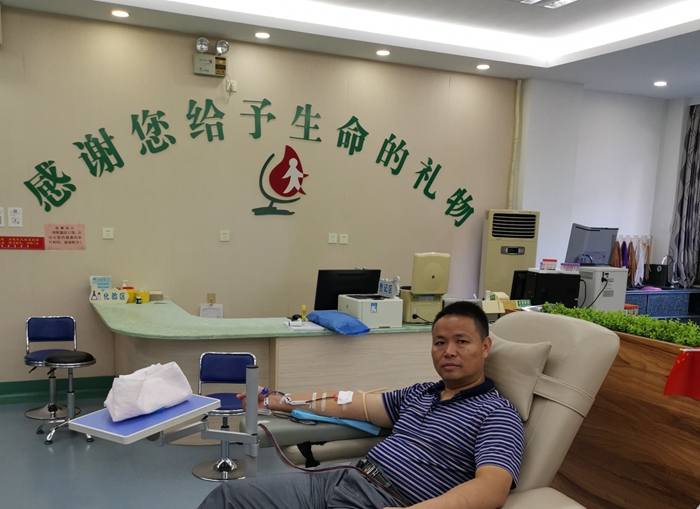 他是武平縣市場監督管理局二級主任科員溫樹煥。從2001年開始第一次獻血至今,已累計獻血38次18600ml,其中,獻全血32次12600ml,獻血小板(成分血)6次8個治療量計血6000ml。堅持獻血這么多年,溫樹煥已和血站的工作人員也成了老熟人。