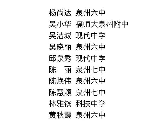 近日,鯉城區首屆“強國復興有我·以字明志”主題教育活動“百佳字號”評選結果公布,來自鯉城區屬五所中學的100名學生字號獲評“百佳字號”,10名老師獲評“優秀指導教師”。
