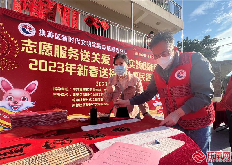 暖意融融迎新春,濃情筆墨送祝福。1月6日上午,“志愿服務送關愛 文明實踐樹新風”2023年新春送福文化惠民活動在廈門市集美區后溪鎮崎溝村、后溪村拉開序幕。書法達人揮毫潑墨,為居民送上新春祝福;親子家庭剪紙,做燈籠,樂享傳統文化大餐;志愿者入戶走訪,為困難家庭送上新春禮包。