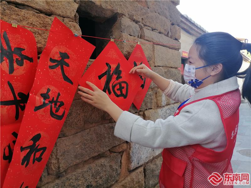 志愿者為居民挑選春聯。(東南網記者 李霖 攝)