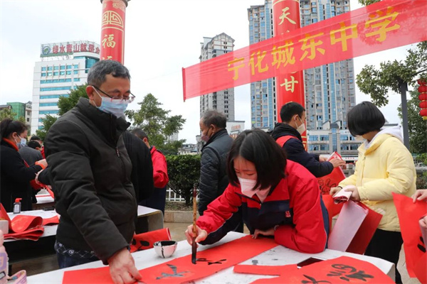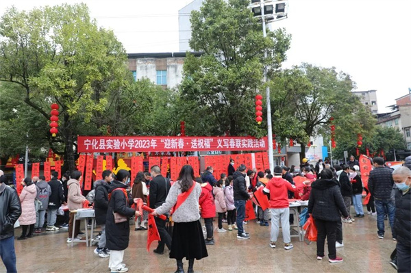 春節臨近,寧化縣城區春聯批發店里,前來購買“福”字、春聯等過年裝飾品的群眾絡繹不絕。近日,寧化縣校外活動中心及14所城區中小學的200余名師生志愿者兵分8路,在社區、廣場、超市門前等地,為廣大群眾寫春聯,送上新春祝福。