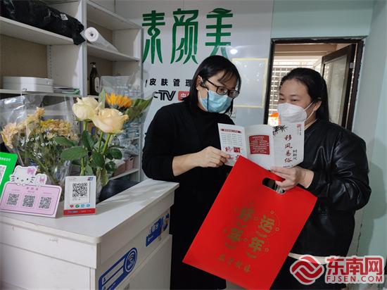 社工走訪商家宣傳移風(fēng)易俗并送上春聯(lián)(張妍娜 攝)