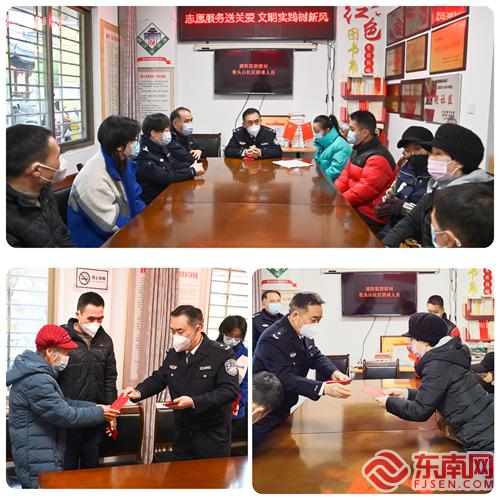 1月19日,建陽監獄志愿者來到共建社區的貧困戶和孤寡老人家中,為他們送上慰問金、貼春聯迎新春,“送福到家”,一幅幅飽含年味的祝福話語寄托著志愿者們的美好祝愿,讓每一位貧困群眾、孤寡老人都感受到社會的溫暖。