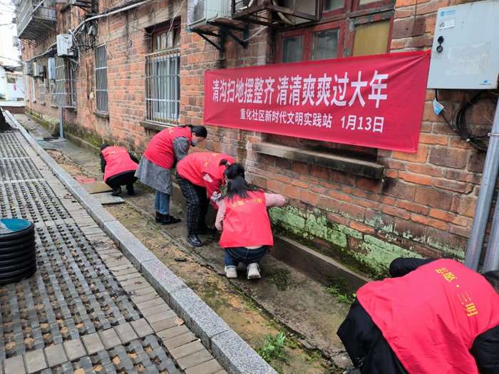 三元區組織開展“清溝掃地擺整齊 清清爽爽過大年”文明實踐活動