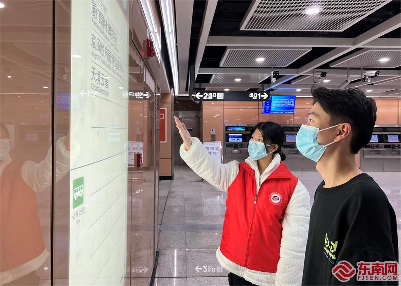 集美地鐵平安志愿者服務隊志愿者為站內乘客提供乘車指引(集美·誠毅志愿者聯盟 供圖)