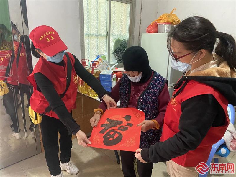 集美區盧媽媽愛心隊分小隊行動,將早早準備好的生活用品、春聯等愛心物資送到黃地村、田頭村、錦園村等隊伍長期關愛的51戶、53個老人家中,陪老人親切交談、詢問老人近況,幫助老人解決實際困難。