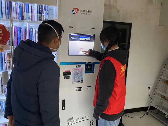 為讀者介紹自助機使用方法(浦城縣蓮塘社工站 供圖)