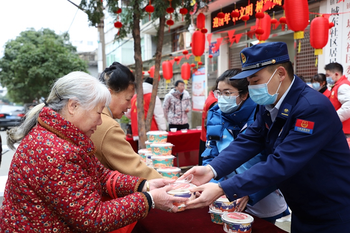文明風2月6日訊 “叔叔,你要什么餡的湯圓,我們今天供應(yīng)的有國泰民安‘餡’文明和諧‘餡’。”來自社區(qū)志愿者向居民介紹到。