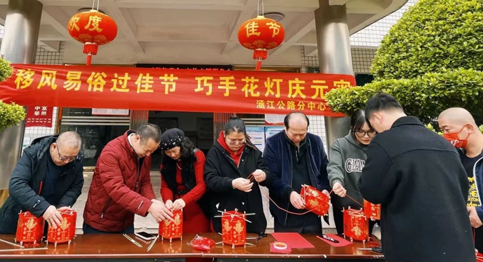 移風易俗過佳節,巧手花燈慶元宵。為倡導節儉綠色過節,提升干部群眾綠色環保意識,元宵節前夕,涵江區各級文明單位積極開展“移風易俗 綠色文明過佳節”主題實踐活動。2月3日,涵江公路分中心開展“移風易俗過佳節,巧手花燈慶元宵”活動,干部職工們利用春節回收的紅包、一次性筷子、紅繩等身邊常見的材料來制作傳統的元宵花燈。大家分工協作,一盞盞喜慶花燈在巧手中成功“綻放”,整個場面熱鬧、溫馨、其樂融融。同日,涵江區財政局開展“節日感黨恩 共話新時代——我們的節日?元宵”文明實踐活動。活動現場,大家互相學習研究,有的用紅紙剪出窗花和一個個活潑可愛的小動物;有的認真琢磨材料包內的每一個部件,拼接、組裝、粘貼、懸掛,最后再放入LED燈、串上手提桿,一個個栩栩如生的兔子燈呈現眼前。通過系列活動,讓大家在響應綠色環保的同時,進一步營造濃濃的元宵節日氛圍,豐富了干部職工們的文化生活。