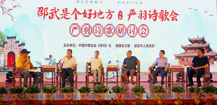 2022年7月28日,由中國作協《詩刊》社、福建省文聯、邵武市委、市政府聯合舉辦的“邵武是個好地方·嚴羽詩歌會”采風活動在和平古鎮文創園舉辦。圖為嚴羽詩歌研討會上,專家學者圍繞《滄浪詩話》進行深度交流。