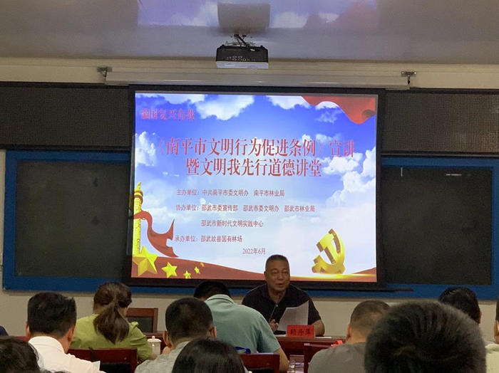 2022年6月17日,邵武市委文明辦和市林業局聯合承辦由南平市委文明辦和南平市林業局主辦的“強國復興有我”《南平市文明行為促進條例》宣講暨文明我先行道德講堂