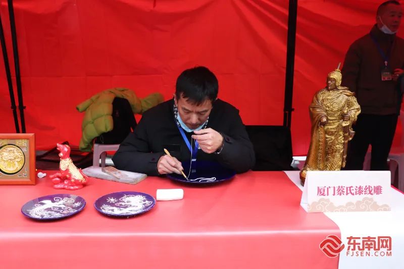 非遺傳承人現場制作廈門蔡氏漆線雕。東南網記者 周濤 攝