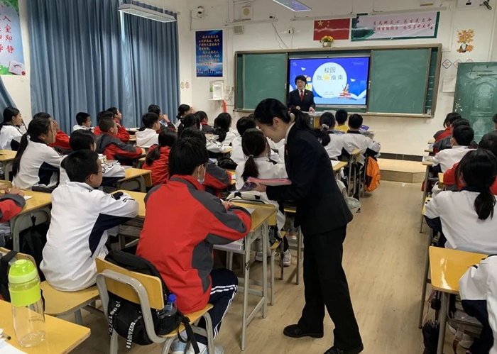 在梅永小學(xué)宣講現(xiàn)場,宣講員志愿者通過學(xué)生學(xué)習(xí)、生活緊密相關(guān)的法律法規(guī)入手,用通俗易懂的語言向同學(xué)們講解法律的基本常識,并結(jié)合近年來未成年人犯罪典型案例,向?qū)W生們分析未成年人走上犯罪道路的原因及如何預(yù)防犯罪。通過本次法治課堂教育活動,進一步引導(dǎo)青少年學(xué)生樹立法律意識、安全意識,提高學(xué)生們的自我保護和防范能力。