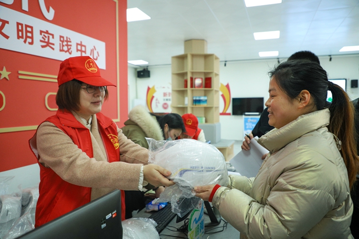 文明風(fēng)2月23日訊 “今天,連江送的“3C安全頭盔”,你領(lǐng)取了嘛?”“領(lǐng)了領(lǐng)了,今天我還替同事領(lǐng)了呢,真不錯(cuò)!”