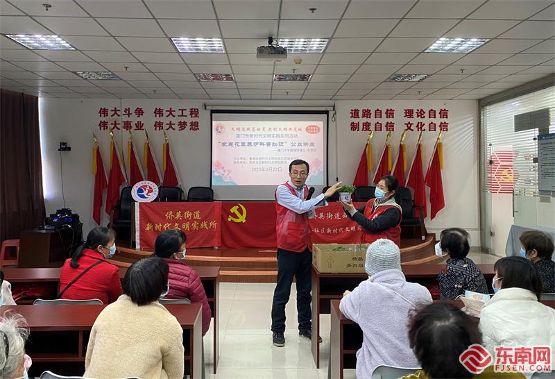 為了豐富居民的業(yè)余文化生活,倡導(dǎo)健康休閑的生活方式,日前,集美區(qū)新時(shí)代文明實(shí)踐志愿服務(wù)總隊(duì)、濱水社區(qū)新時(shí)代文明實(shí)踐站舉辦家庭養(yǎng)花養(yǎng)護(hù)知識(shí)講座,邀請(qǐng)廈門(mén)大學(xué)植物學(xué)博士何恩銘為近50位居民授課。