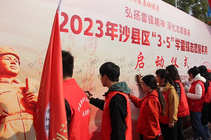 啟動儀式上,團(tuán)區(qū)委書記肖水華宣讀了志愿服務(wù)《倡議書》,五星級志愿者林有財分享志愿服務(wù)工作經(jīng)驗(yàn),參加活動的全體志愿者在簽名墻上進(jìn)行踐諾雷鋒精神倡議簽名。