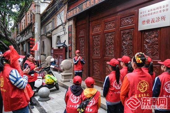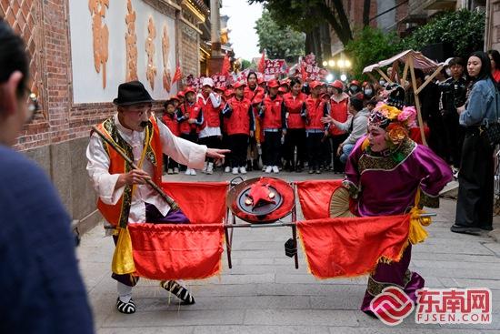 在三朝巷,“火鼎公婆”表演吸引志愿者、市民游客圍觀。鯉城區(qū)委文明辦 供圖