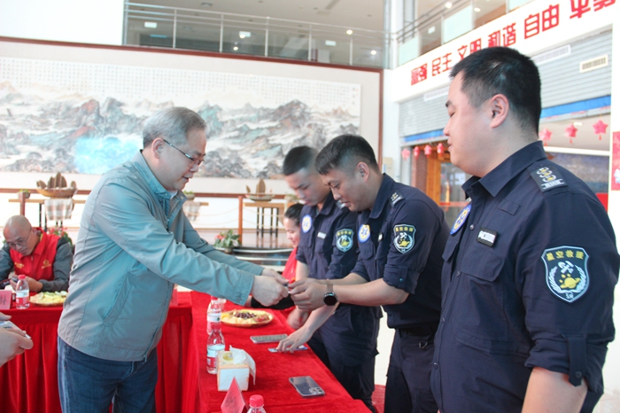現(xiàn)場為志愿者發(fā)放禮遇小禮品(泉港區(qū)委文明辦供圖 陳燕燕攝)