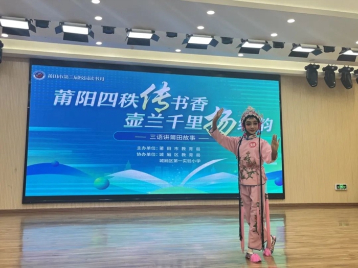 城廂區第一實驗小學推出“三語講莆田故事”比賽,48名選手用普通話、方言、英語講述莆田故事,融入贊句、歌謠、莆仙戲劇等表演,將興化大地秀美風光、非遺文化等娓娓道來。