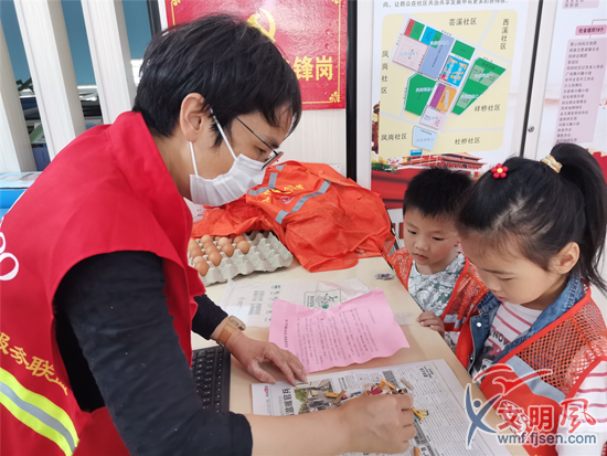孩子與家長(zhǎng)一同合作撿煙頭。(鳳祥社區(qū)供圖)