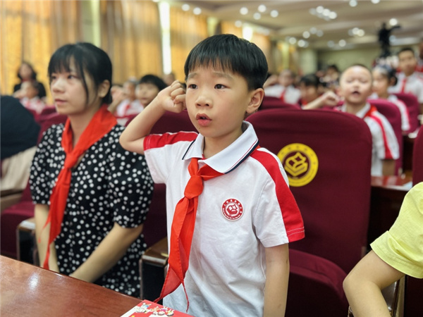 “我是中國少年先鋒隊隊員,我在隊旗下宣誓:我熱愛中國共產黨,熱愛祖國,熱愛人民,好好學習,好好鍛煉。準備著:為共產主義貢獻力量。”在2023年六一到來之際,上杭縣實驗小學開展了2023年一年級首批少先隊入隊儀式。