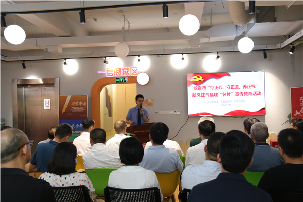活動最后,龍巖市委宣傳部副部長、文明辦主任陳杭芹講話并提出了三點意見。一要主動作為,提升“名片”。各單位要進一步提高對打造新風正氣福建“名片”工作重要意義的認識,主動作為,把鞏固深化新風正氣福建“名片”工作與各領域各行業“深學爭優、敢為爭先、實干爭效”行動的緊密融合、與“我為群眾辦實事”的緊密結合,緊扣“存正心、守正道、養正氣”主題積極開展形式多樣的創建活動、宣傳教育。二要結合主題,踐行“名片”。12個市直牽頭單位要在前期打造新風正氣福建“名片”工作的基礎上,持續發力,結合省直主管部門的工作部署,立足行業系統特點和工作實際,帶頭走進紅古田基地開展1次以上弘揚“存正心、守正道、養正氣”行業新風正氣的創建活動,亮出服務清單、積極踐行“名片”,鞏固深化“名片”打造工作。三要加強宣傳,展示“名片”。各單位要充分挖掘活動中的亮點、創新點,及時總結提升,利用單位門戶網站、微信公眾號等新媒體做好宣傳報道,擦亮“名片”內容。利用宣傳欄、LED顯示屏等載體,在辦公場所、服務窗口、樓宇梯視等地展示“名片”公益廣告和宣傳視頻,不斷提高新風正氣福建“名片”知曉力和影響力。