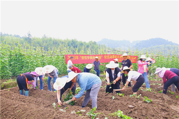 遠(yuǎn)處,青山巍巍,云霧繚繞;近處,田間地頭里,黨員干部們正揮鋤刨土,挖穴插苗……簽約儀式結(jié)束后,黨員干部們來(lái)到認(rèn)領(lǐng)田地開(kāi)展農(nóng)事活動(dòng),在農(nóng)戶(hù)的指導(dǎo)下學(xué)習(xí)種薯技巧,整個(gè)勞作過(guò)程,大家熱情高漲、干勁十足。