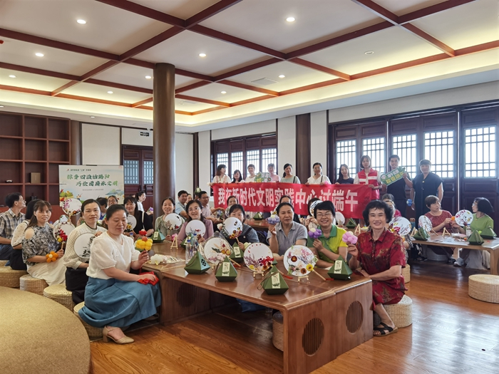 活動伊始,志愿者向社區(qū)居民們分享了端午節(jié)的起源和傳統(tǒng)習(xí)俗,比如吃粽子、扎艾草,但卻很少有人知曉從唐代起還有端午贈扇的風(fēng)俗,團(tuán)扇是中國漢族傳統(tǒng)工藝品及藝術(shù)品,凝結(jié)了中國傳統(tǒng)文化內(nèi)涵,素有團(tuán)圓、美好之意,寄托著人民對美好生活的向往。作為中國首個入選世界非遺的傳統(tǒng)節(jié)日,端午節(jié)帶給我們的不僅是濃重的歷史文化,還有根植于精神基因當(dāng)中的家國情懷。