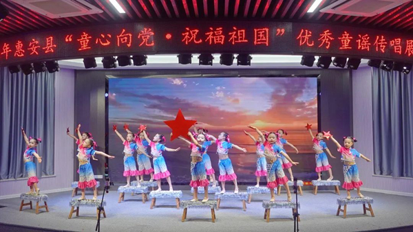 活動中,孩子們通過多樣的形式、新穎的構思傳遞童謠的魅力,唱響童心向黨、歌頌祖國、熱愛家鄉的主旋律。《祖國祖國我愛你》《黨是咱的好靠山》等一首首朗朗上口、旋律動聽的原創童謠滿載孩子們的愛國主義情懷,表達了對黨濃厚的熱愛之情;《惠安愈來變愈昳》《惠安韻·家國情》極富惠安本土特色,贏得了現場陣陣掌聲;《婀娜咱的惠安女》充分展示了新時代惠女精神,贊美了惠安女勤勞智慧和創新進取;《古樂南音》被孩子們用豐富的表現形式精彩演繹,美輪美奐、童趣十足。
