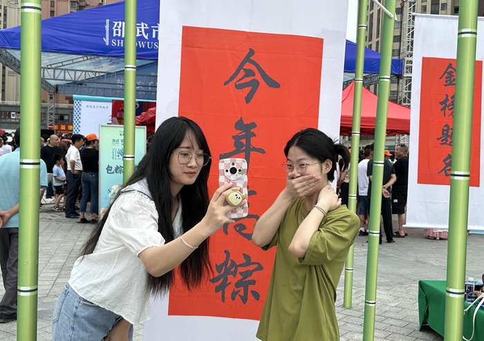 “今年是第五屆粽子節(jié),我每年都會(huì)和家里人一起來,玩游戲、包粽子、吃美食,活動(dòng)豐富多彩,我們很喜歡這種氛圍。”正在投壺體驗(yàn)區(qū)打卡的市民吳美英說道。