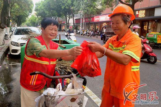 志愿者帶著包好的粽子走訪慰問孤寡老人、環衛工人。(同安區委文明辦供圖)