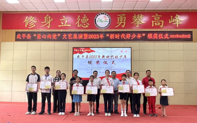 頒獎儀式上,主持人宣讀了榮獲2023年武平縣“新時代好少年”稱號的名單。與會領導為武平縣2023年“新時代好少年”代表頒獎。
