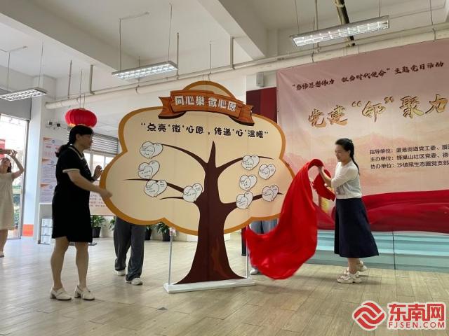 這是在思明區蜂巢山社區“黨建‘鄰’聚力·近鄰展‘蜂’彩”系列活動上的一幕。當天,蜂巢山社區黨委以建黨102周年為契機,將社區“微心愿”項目化,與共建單位攜手打造社區治理黨建共同體。不少居民都在心愿樹上寫下自己的“微心愿”,共建單位現場進行認領。現場共征集到了25個“微心愿”,被共建單位全部認領。