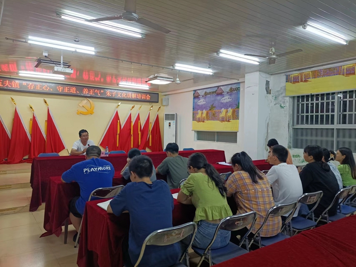 傳承朱子文化,厚植家國情懷。五夫鎮舉辦“存正心、守正道、養正氣”朱子文化講解培訓會,邀請朱子學校官興順老師為五夫青年授課。講座圍繞書院的前世今生、朱子與朱子文化、朱子文化的當代價值以及朱子文化對武夷山的深刻影響等四個方面對朱子文化進行詳細的介紹,引導青年深入開展優秀傳統文化學習活動。